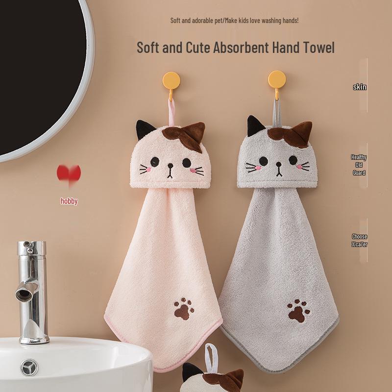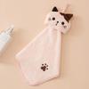 Cat Embroidery Coral Fleece Towel - Absorbent Hanging Hand Towel for Kitchen & Bathroom
