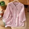 Literary Retro Embroidery Exquisite Dopamine Wear Half-sleeved Short-sleeved Cotton and Linen Shirt Spring and Summer New Versatile