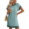 Women's Summer Casual Color Contrasting Twisted Strip Short Sleeve Pocket Dress