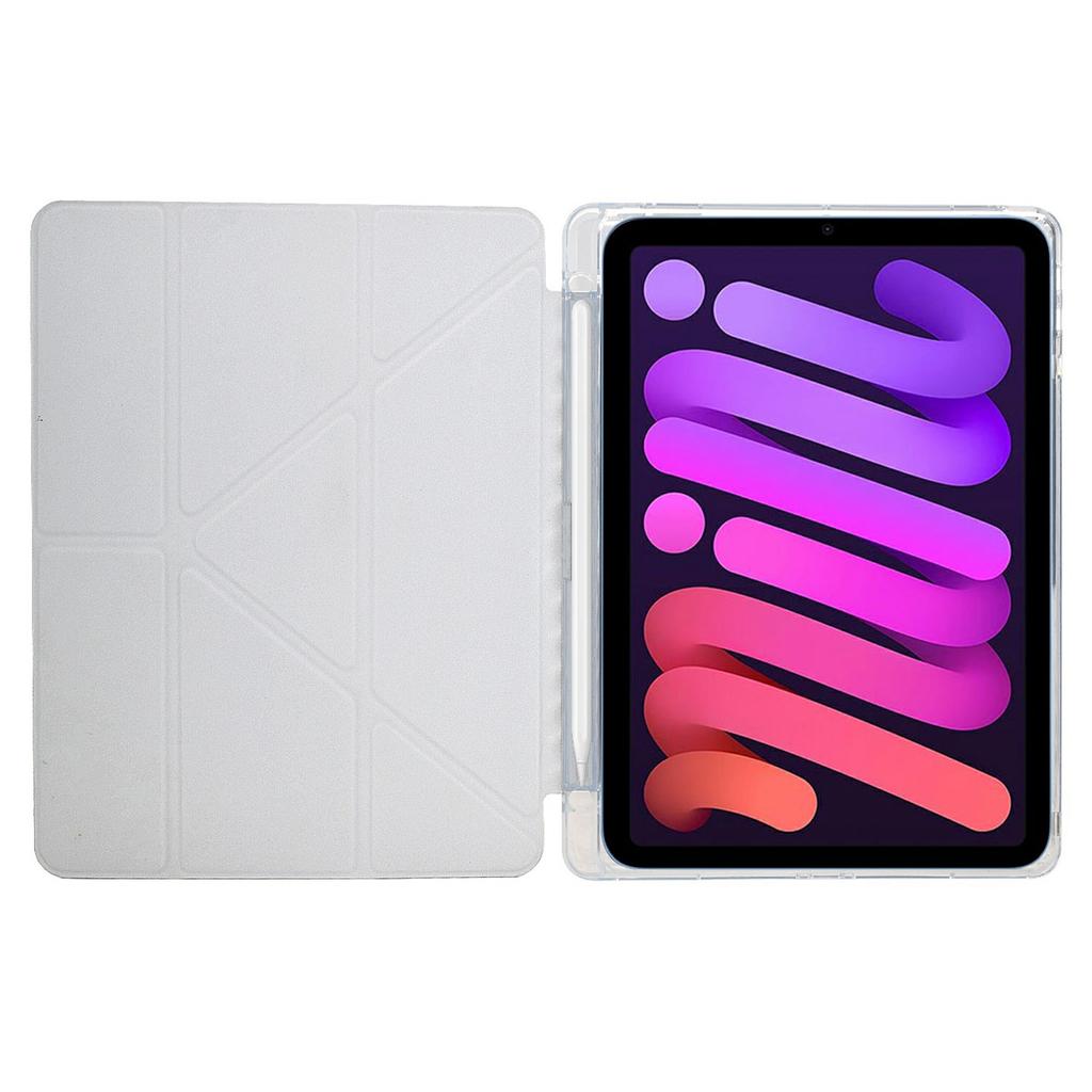 For iPad Mini (2024)/(2021) Case Y-Fold Stand Pyramid-Patterned Leather+Clear Acrylic Tablet Cover with Pencil Holder