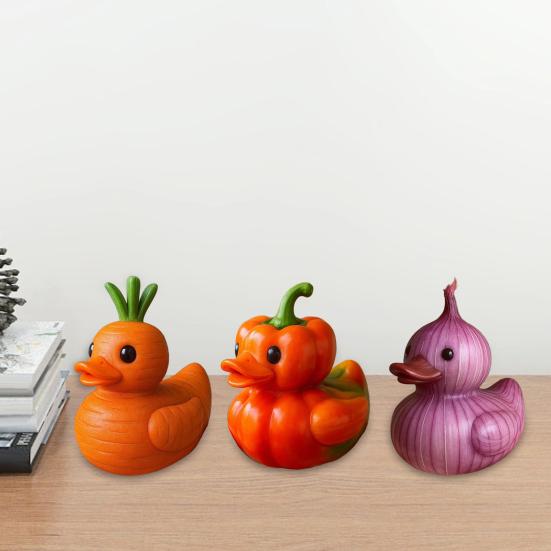 Vegetable Duck Figurine Tomato Carrot Mushroom Onion Potato Cabbage Pepper Duck Statue Resin Sculpture Home Office Decoration Ornament