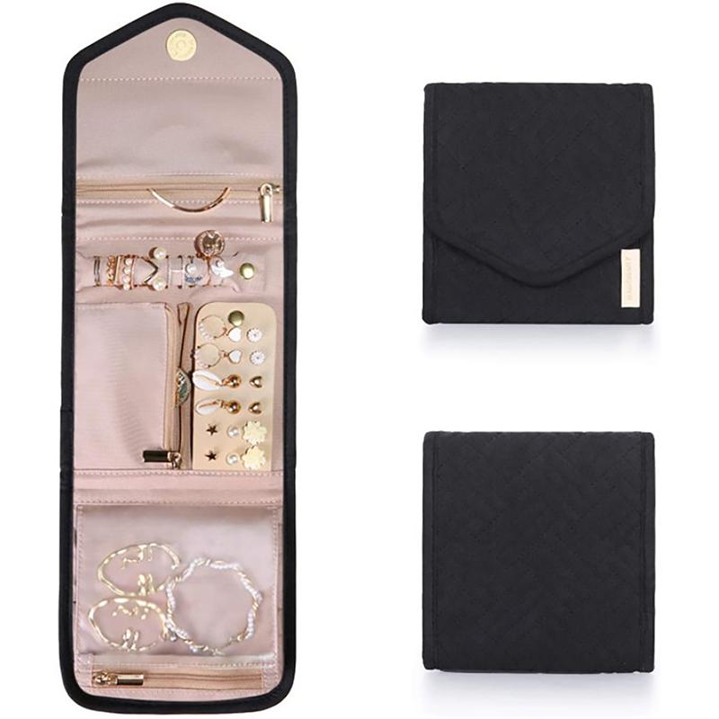 1Pc Roll Foldable Jewelry Case Travel Jewelry Organizer Portable For Journey Earrings Rings Necklaces Brooches Storage Bag
