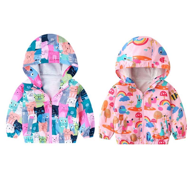 2-8 Years Kids Girls Cartoon Printed Hooded Coat Zipper Jacket