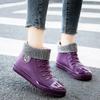 Adult Waterproof PVC Canvas Shoes Women Platform Ankle Rain Boots Outdoor Rain Shoe Ladies Non Slip Plus Cotton Silicone Boots