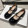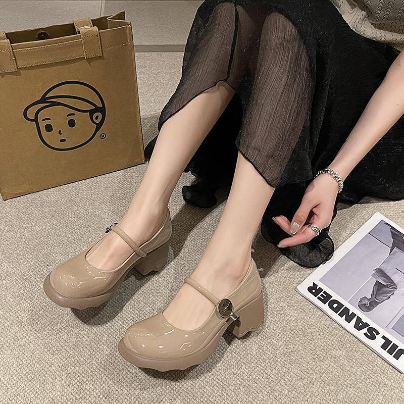 Patent Leather Round Head Mary Jane Shoes Women's Spring and Summer Comfortable Thick Heel Light Mouth Single Shoes High Heel One Word with Shoes