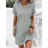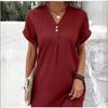 Summer Women Dress V Neck Button Short Sleeve Loose Solid Pullover Casual Daily Wear Mini Dress