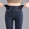 Elevate your autumn and winter wardrobe with these Women's Plus Size High Waist Slimming Jeans. Designed for comfort and style, these jeans feature a high waistline that flatters your figure while providing a slimming effect. Crafted from premium cotton material, they ensure warmth and coziness with a soft fleece lining, perfect for cooler seasons. Embrace a casual yet chic look, whether you're running errands or meeting friends, and enjoy the blend of practicality and fashion in these versatile jeans.