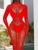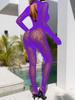 Sultry European & American Long-Sleeved Bodysuit with Fishnet Stockings - See-Through, Closed Crotch
