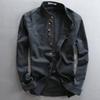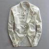 Introducing a sophisticated men's casual shirt perfect for the autumn and winter seasons. This shirt is crafted from high-quality linen, offering a comfortable and breathable feel. It features a stand collar, adding a touch of traditional Chinese style to its design. The long sleeves and solid pattern make it a versatile piece that can be dressed up or down for various occasions. Ideal for those who appreciate a blend of cultural elegance and modern casual wear.