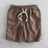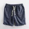 Summer Light and Thin Ramie Shorts Solid Color Simple Elastic Drawstring Cotton Beach Casual Loose Five-point Pants Men
