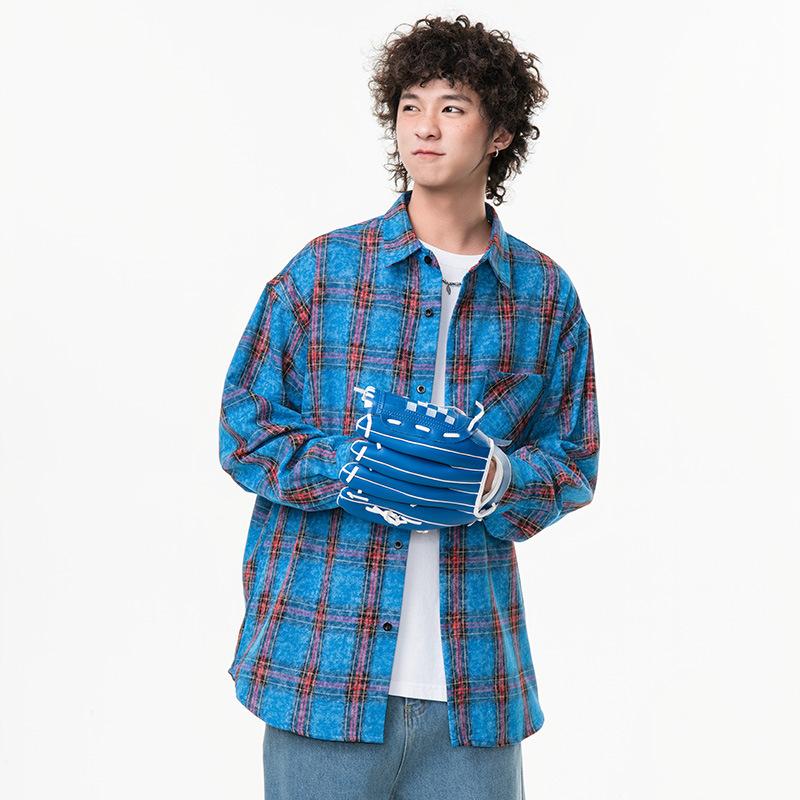 New Japanese Mid-length Shirt for Spring for Men's Fashion Trend Casual Plaid Shirt
