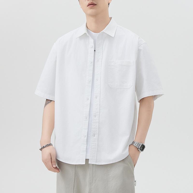 New Summer Pure Cotton Short-sleeved Shirt for Men's Japanese Simple Light Business Shirt American Style
