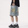 Summer American-style Trendy Graffiti Print Ripped Denim Short Men's Five-point Pants Medium Pants