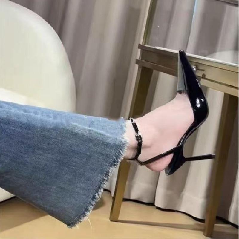 Sexy High Heels Women's Elegant Patent Leather Pointed Toe Stiletto Sandals 2025 Summer New Comfortable Banquet Stiletto Sandals