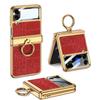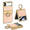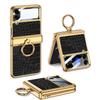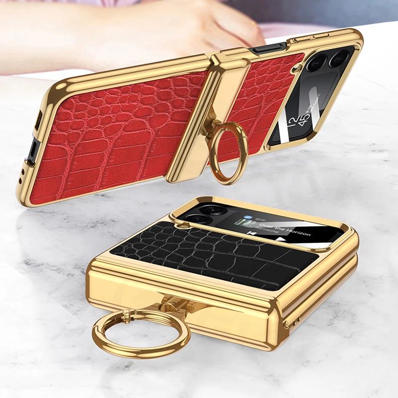 Luxury Plating Leather Case for Samsung Galaxy Z Flip 4 Magnetic All-included Hinge Ring Holder Cover for Galaxy Z Flip4 Case