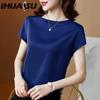 IHUASU Women's Fashion Casual Solid Color Print Short Sleeve O Neck Blouses & Shirts