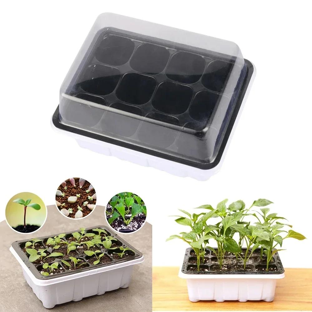 12 Cells Plastic Nursery Pots with Breathable Hole Planting with Dome Base Garden Grow Box Plant Seed Tray Kit Germination Box