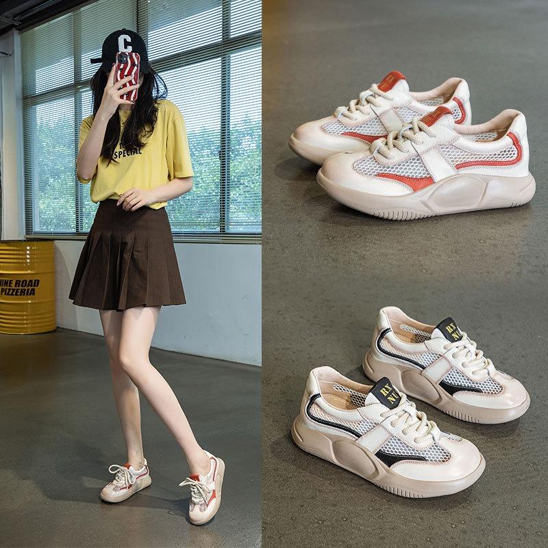 Student Lace-up Casual Shoes Thick-soled Shoes Flat and Perforated Women's Shoes