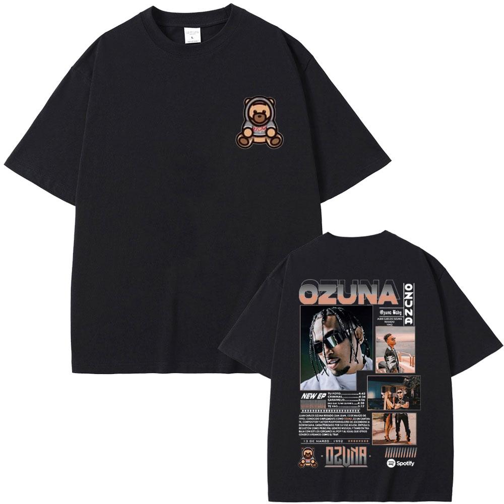 Rapper Ozuna Double Sided Print T-shirt Anuel AA Streetwear Men Women Hip Hop Oversized T-shirts Men's Fashion Vintage T Shirts
