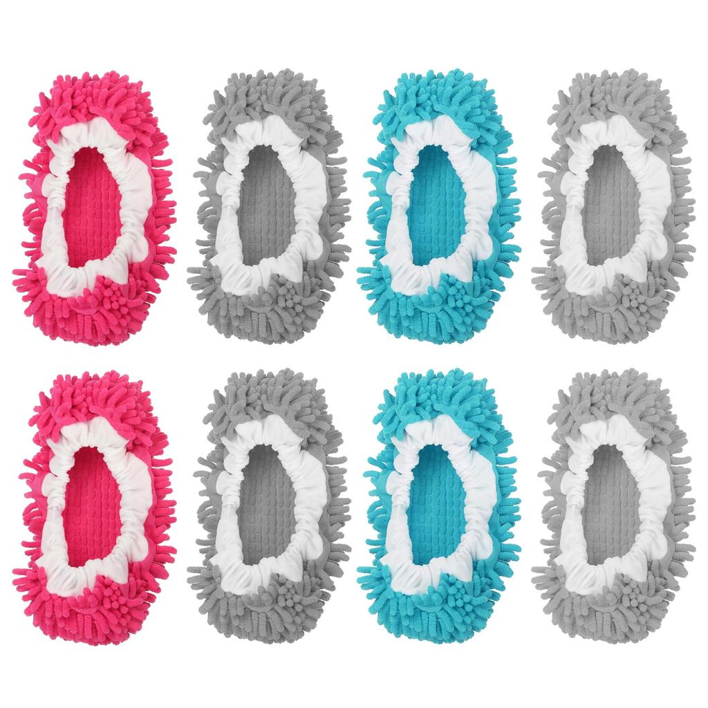 Uxcell Mop Floor Cleaning Shoe Chenille Foot House Cleaning 4 Colors 8 Pack Slippers, Washable, Microfiber, Covers, Duster, Socks, Tools,