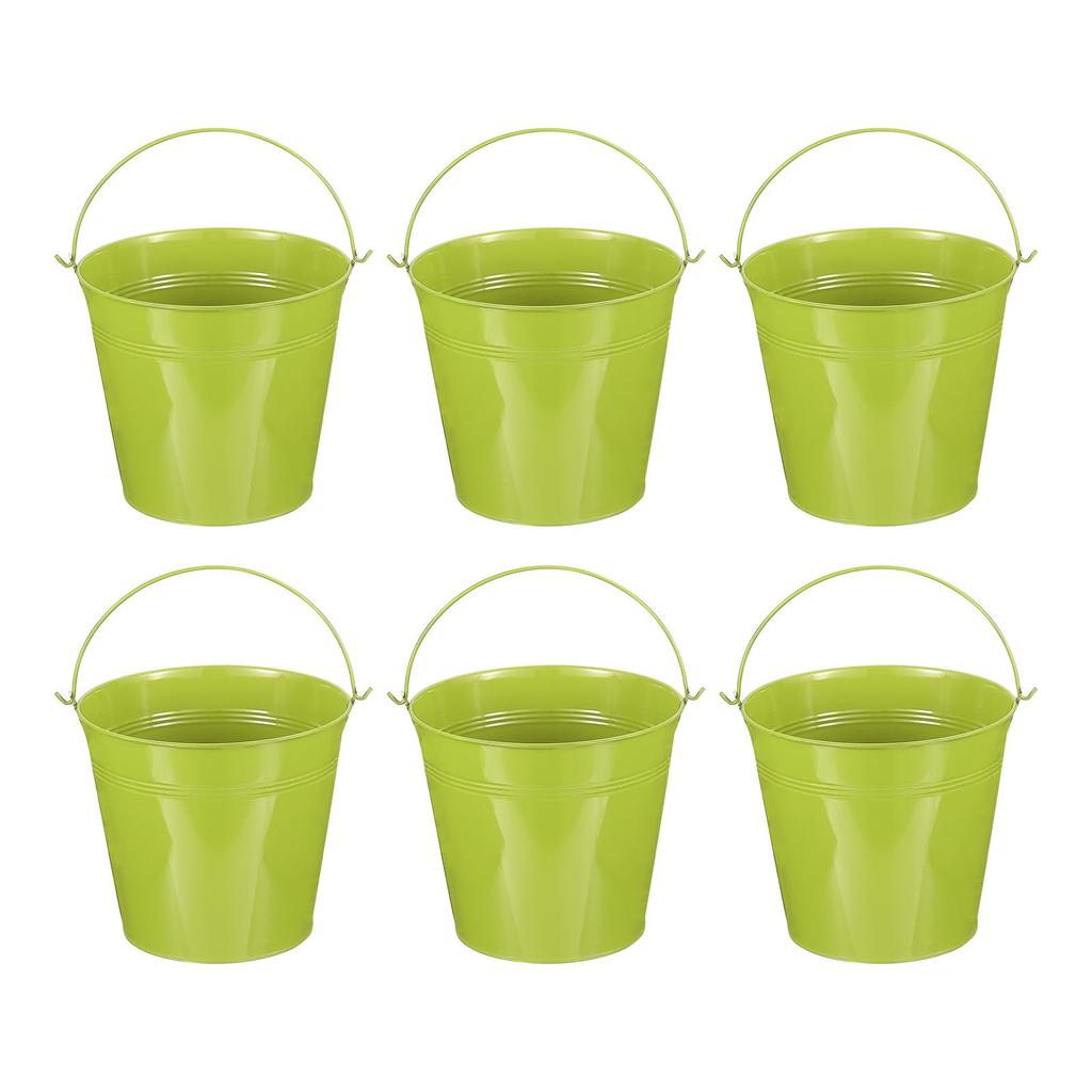 Color: Green; Material: Metal; Overall Dimension: 18 x 13 x 16.5cm/7 x 5.1 x 6.4" (Top Diameter*Bottom Diameter*Height); Packing List: 6 x Mini Color Metal Buckets.