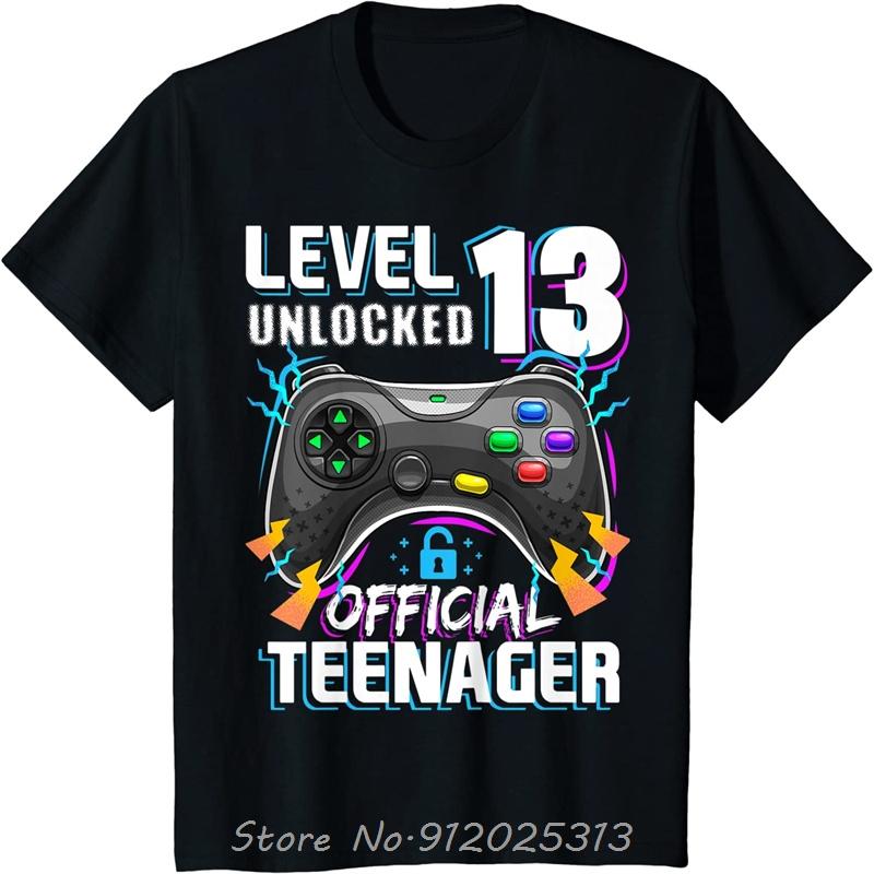 Level 13 Unlocked Official Teenager Video Game 13th Birthday T-Shirt Oversized Tshirt Unisex O-Neck Tshirt Fitness T-shirt