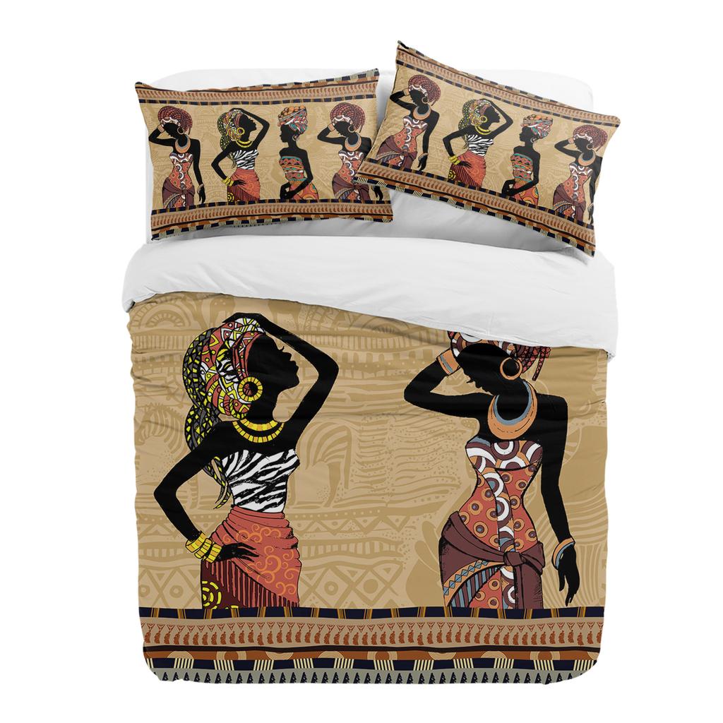 Ethnic Style African Women Black Women 3pcs Bedding Set For Double Bed Home Textile Duvet Cover Quilt Cover Pillowcase