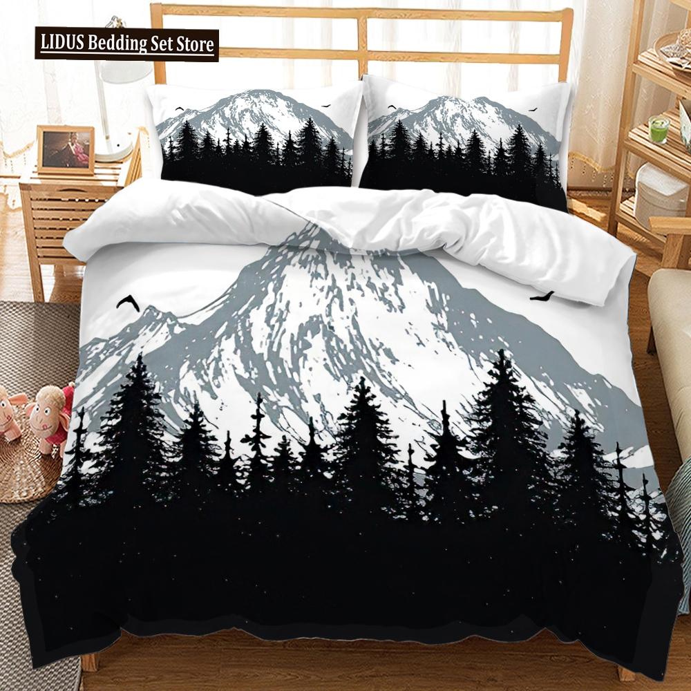 3D Mountain Forest Duvet Cover Set Snow Mountain Winter Theme King Queen Size Comforter Cover For Kid Teen Polyester Bedding Set