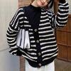 Autumn and Winter Knitted Sweater Loose and Lazy American Design Sense V-neck Striped Sweater Jacket Large Size Casual Foreign Style