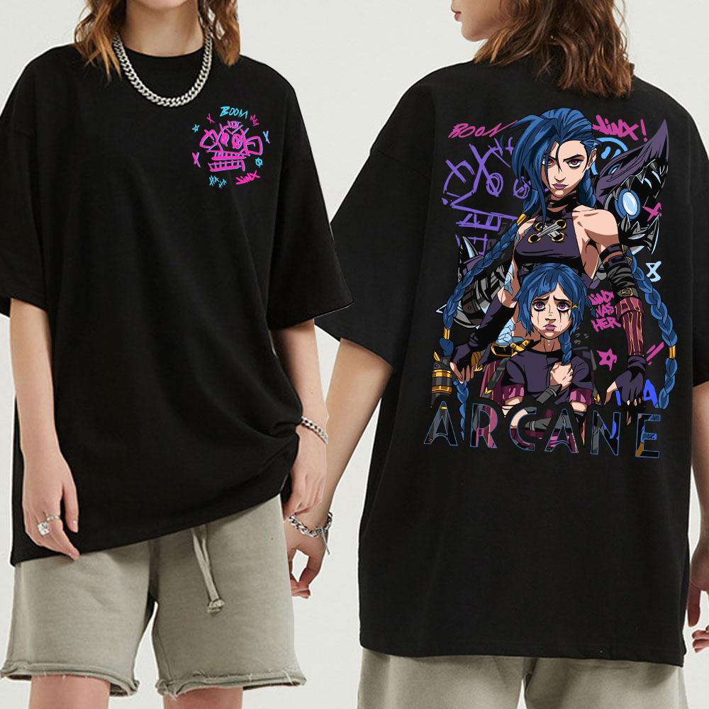 Arcane 2 T Shirts Fashion Men Harajuku Aesthetic Retro Anime Vi Jinx Tshirt Unisex High Quality Cartoon Vintage Cotton Tee Shirt