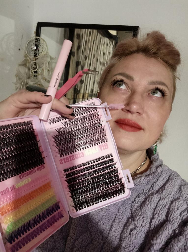 This set of false eyelashes is simply stunning! I received it in an organized and convenient package, with a variety of colors that allows you to play with the look – whether for a dramatic appearance or something more delicate and unique.. The lashes themselves are very easy to apply, sit nicely on the eye, and don't feel heavy at all. Each lash is precisely separated, making it easy to control the density and the final look.. Perfect for events, photography, or even when you just want to add a little color to your routine. I got a lot of compliments!