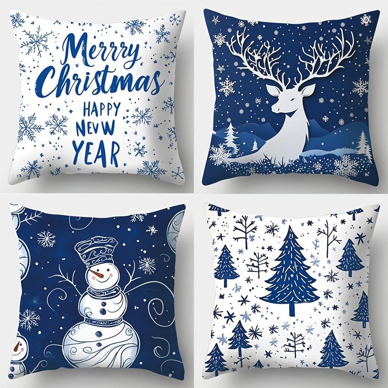 Home Decor Merry Christmas & Winter Animal Snowflake Pillow Pattern Cushion Cover Suitable For Sofa Bedroom Car Pillow Cover