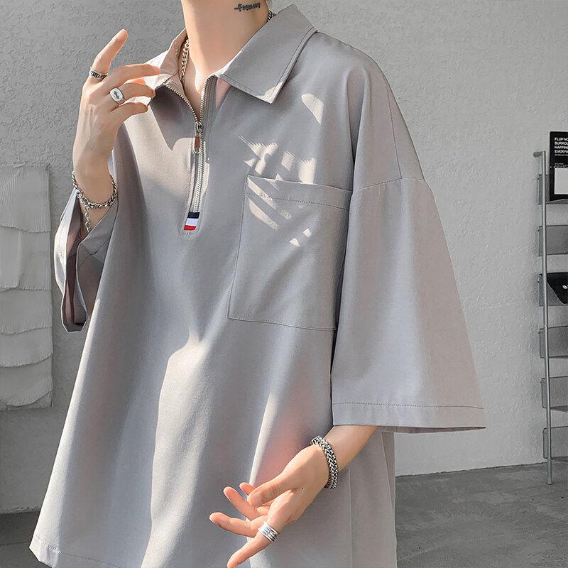 Summer Polo-Neck Loose T-shirts Fashion Zipper Men's Clothing Pockets Spliced Casual Basic Solid Color Half Sleeve Polo Shirts