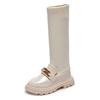 2025 New Winter Korean Over-the-knee Boot for Girls with Metal Chain Sock Boots Kids Fashion Solid Glossy Chic Girls Soft Boots