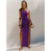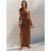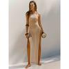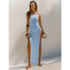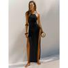 Summer Backless Knitted Beach Dress Double-sided High Slit Suspender Women Sexy Long Dresses Fashion Bandage Female Elegant Dress 116