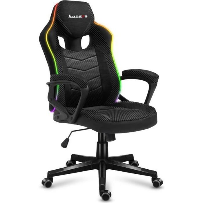 Chaise Gaming HUZARO FORCE 2.5 LED RVB, Tissu Chaise Bureau, Pc Gaming, Ergonomique, Réglable, Pivotant, Accoudoirs, Gamer
