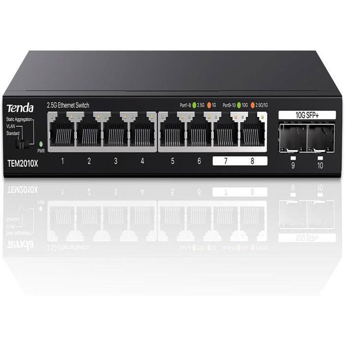 Switch Ethernet 2,5G - Tenda - TEM2010X - 8 Ports RJ45 - 2 Ports SFP+ 10G - VLAN, Agrégation Statique