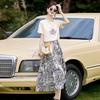 Fashion Blue and White Porcelain Printing Upper and Lower Two-piece Skirt Set for Women's Summer New Cool T-shirt with Skirt Set