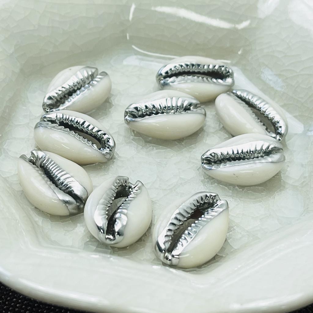 10Pcs, White Natural Shell Zinc Alloy Silvery Edge Pendant Charms for DIY Necklace Accessories, Creative Jewelry Making, Women Men Bulk Crafts Gifts