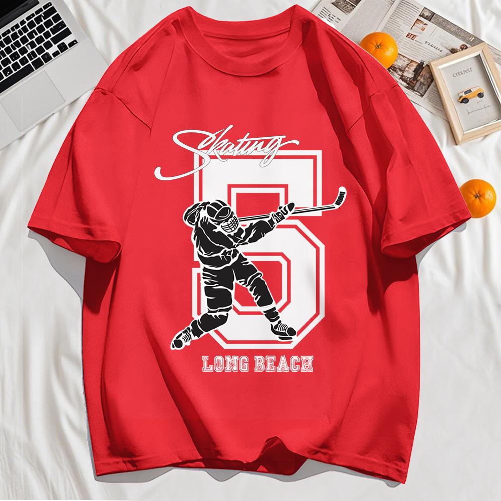 Ice Hockey Long Beach Number 5 Prints Man'S Shirts O-Neck Breathable T-Shirt Cotton Short Sleeve Oversized All-Match Tops