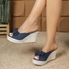 Peep Toe Summer Shoes Women Platform Sandals Fashion Brand Wedges Ladies Party Shoes High Heels 10cm Big Size 42 Black Blue D504
