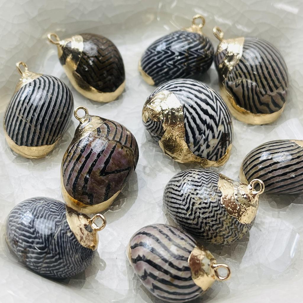 10Pcs, Summer Boho Style Natural Shell Striped Conch Zinc Alloy Golden Edge Pendant Charms for DIY Necklace Accessories, Creative Jewelry Making
