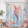 Pink Mermaid Shower Curtain Bath Curtain for Girls Children Bathroom Undersea Ocean Theme Bath Decoration with Hook