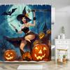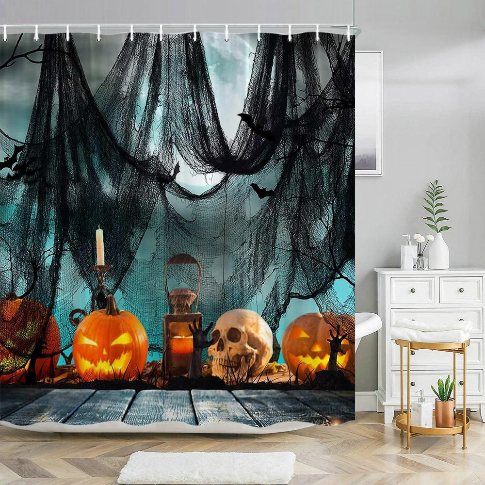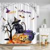 Scary Halloween Shower Curtains Black Cat Pumpkin Shower Curtain Witch Purple Bat Spider Web Cloth Shower Curtain Bathroom Decor