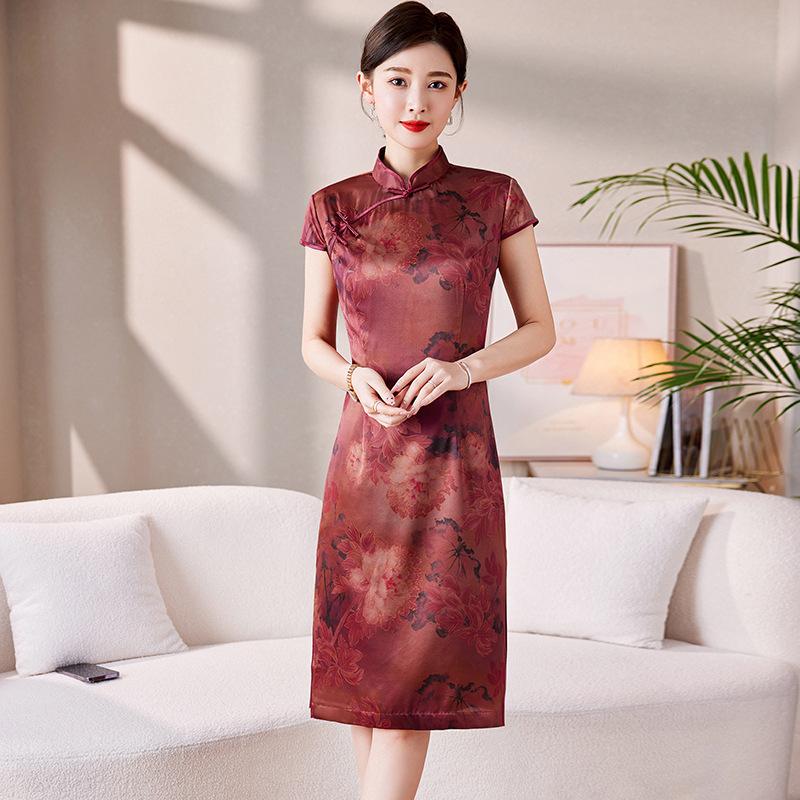 Women's Silk Dress Summer New High-end Luxury Silk Cheongsam Skirt