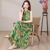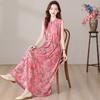 Elegant Floral Print Plus Size Dress for Middle Aged Women Summer Cotton Long Dress