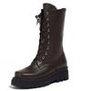 2025 Design Female Mid Calf Boots Round Toe Thick Heels 5cm Platform Lace Up Big Size 42 43 Vintage Soft Daily Bota