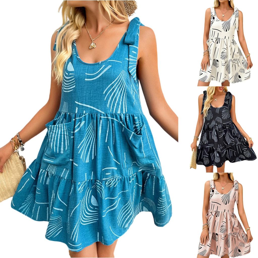 Women's Casual Fashion Casual Printed Suspender Pocket Dress Suspender Pocket Dress
