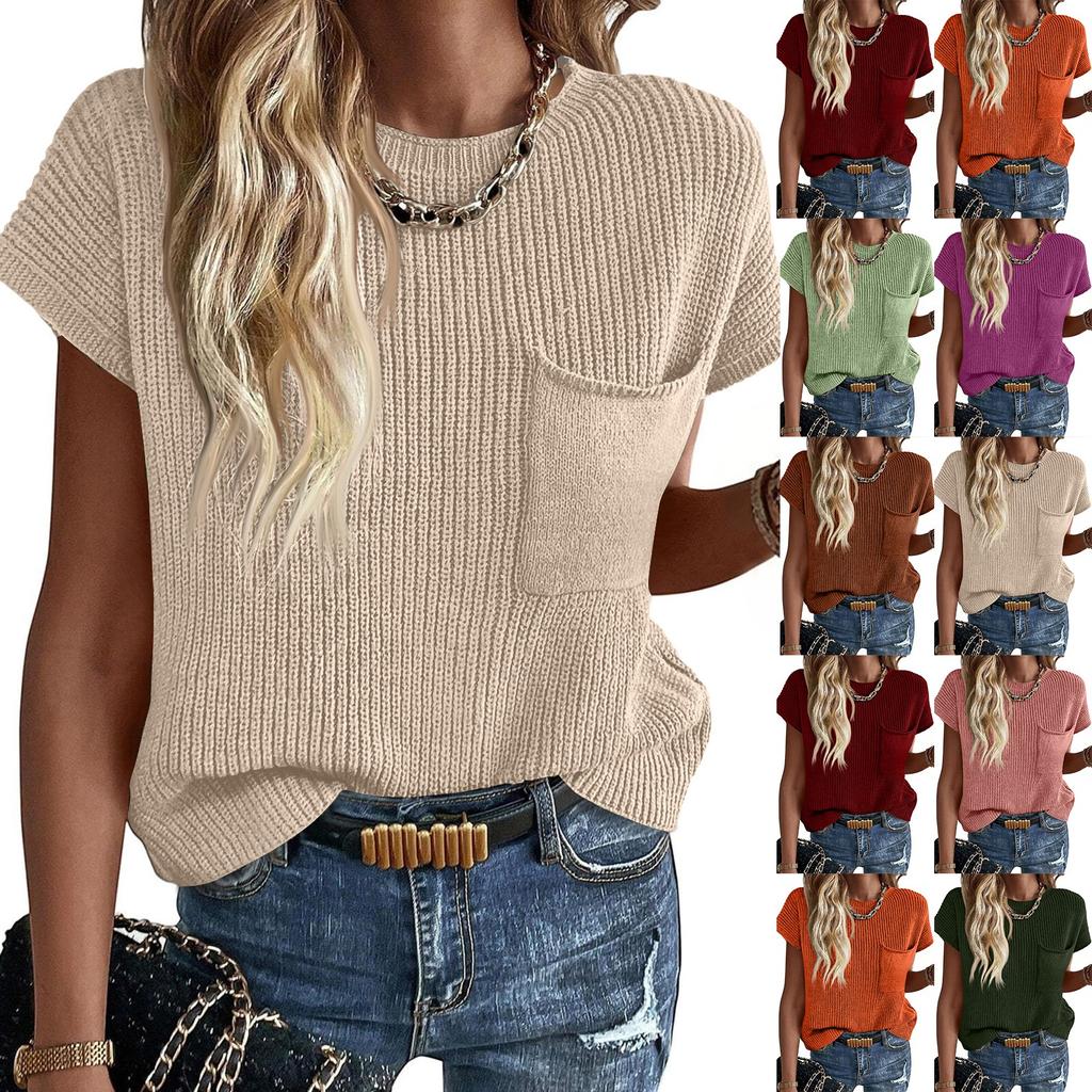 Women's Fashion Casual Loose Covered Sleeve Round Neck Knit Top