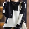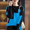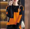 Knitted Sweater with Round Neck Color Blocks Women's Autumn Spring Sweater Contrasting Color Design Casual Versatile Shirt with Loose Top and Bottom